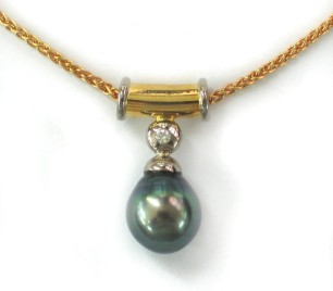 Anhänger mit Tahitiperle 750/ooo Gelbgold mit Brillant 0,05 ct tw vsi