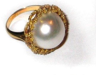 Fingerring mit Tahitiperle in 750/ooo Gelbgold