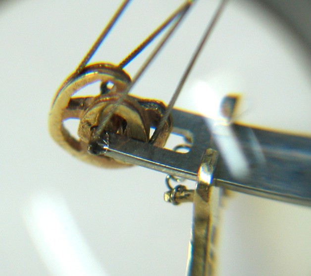 Auf den Bildern nur ansatzweise zu erkennen: Die Achse der Cam wird einfach an das stumpfe Ende des Wurfarmes gelasert.