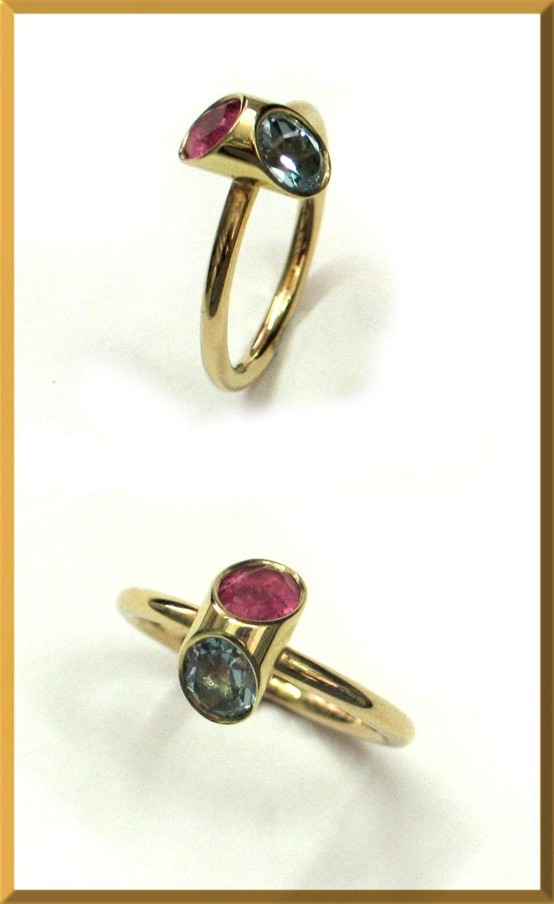 Handarbeit Einzelstück 585 Gelbgold, Rubin und Blautopas: