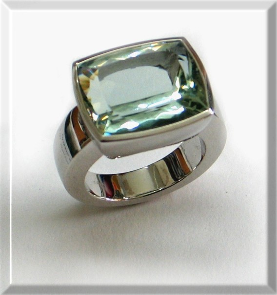 Üppiger Damenring 750 Weissgold mit grünem Beryll: